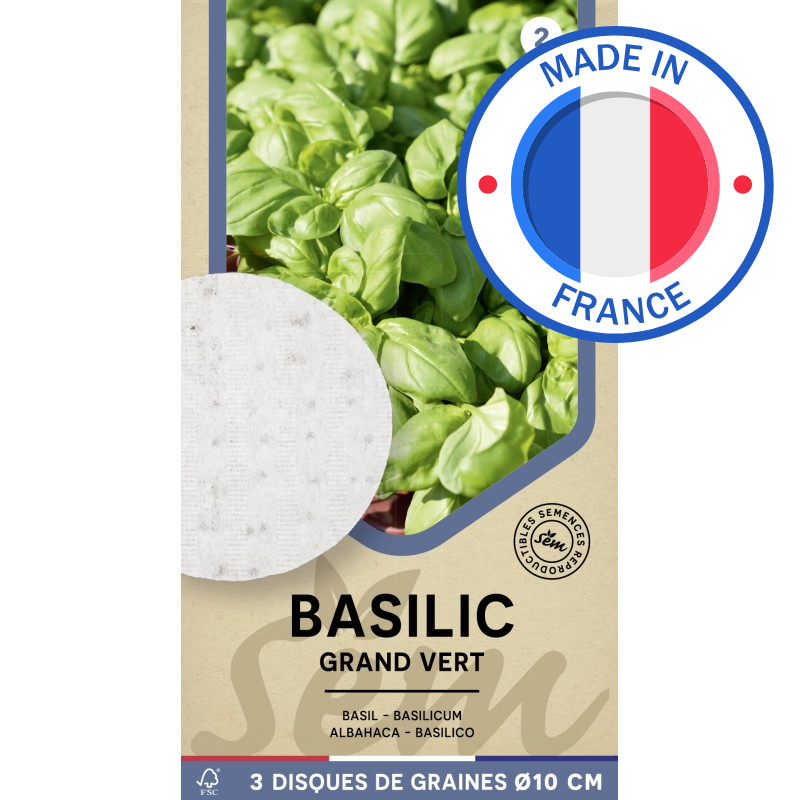 Avec ces disques de basilic Grand Vert, profitez de basilic frais et aromatique, cultivé facilement et sans contraintes.