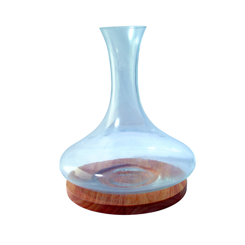 Cette carafe se distingue par son verre soufflé délicatement courbé, permettant une oxygénation maximale du vin. Son socle en bois raffiné offre à la fois stabilité et un élégant support d’exposition, parfait pour une présentation distinguée à table.