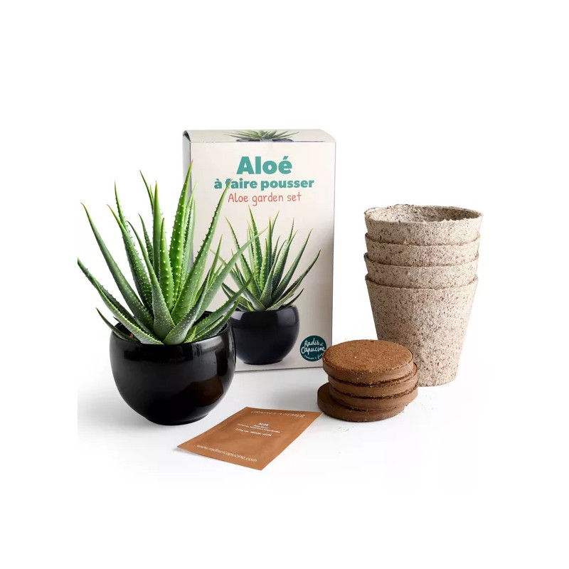 Offrez-vous ou offrez le Kit Jardinage Aloe Vera de Radis et Capucine pour cultiver le bien-être naturellement chez vous.