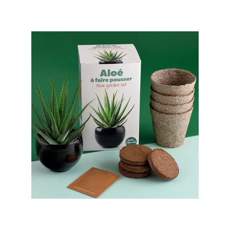 Le Kit Jardinage Aloe Vera de Radis et Capucine vous permet de cultiver votre propre Aloe vera, une plante reconnue pour ses vertus apaisantes et hydratantes. Ce kit éco-friendly et facile à utiliser contient tout le nécessaire pour faire pousser cette plante emblématique du bien-être naturel. Fabriqué en France, zéro déchet et vegan.