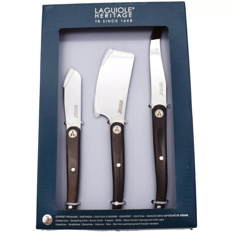 Offrez-vous le Coffret Laguiole Heritage de 3 couteaux à fromage et beurre pour une dégustation raffinée et une présentation élégante de vos fromages.