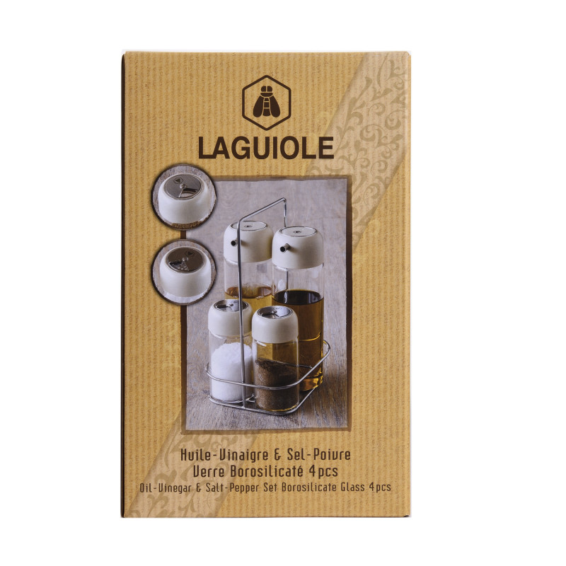 SET 4 Pièces HUILE ET VINAIGRE SALIERE POIVRIER SUR SOCLE - Laguiole