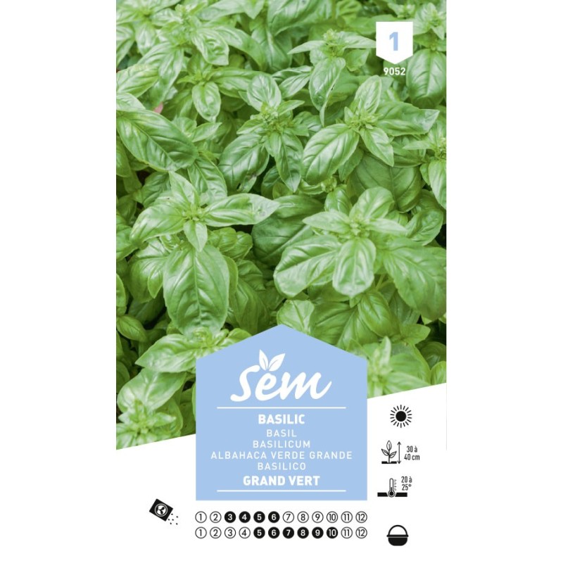 Le Basilic Grand Vert est une plante aromatique populaire, reconnue pour son feuillage vert brillant et son arôme puissant. Adapté aussi bien à la culture en pleine terre qu’en pot, il est parfait pour agrémenter vos plats tout au long de la saison estivale. Le basilic se cultive facilement sous des températures chaudes, entre 20 et 25°C, et offre une récolte généreuse de mai à octobre. C'est une herbe incontournable pour tous les amateurs de cuisine méditerranéenne ou d'herbes fraîches.
