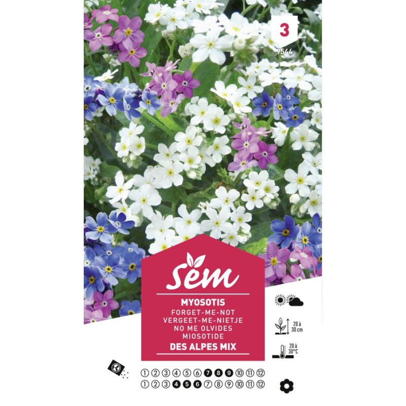 - Floraison : Le myosotis des Alpes commence à fleurir en avril et continue jusqu'en juin. Ses petites fleurs bleues délicates apportent une touche romantique au jardin. Pour favoriser une belle floraison, veillez à maintenir le sol légèrement humide pendant la période de croissance.