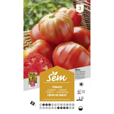 Graines Tomate Coeur de Boeuf : variété ancienne à gros fruits charnus, à la chair ferme et juteuse, idéale pour les salades et plats gourmands.