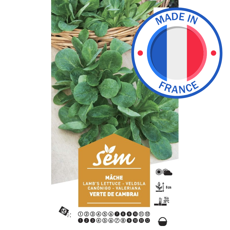 La Mâche Verte de Cambrai est une variété rustique, prisée pour ses petites rosettes de feuilles tendres et sa saveur douce et délicate. Idéale pour préparer des salades légères et vitaminées pendant l'automne et l'hiver, la mâche Verte de Cambrai se développe bien sous une exposition ensoleillée ou mi-ombragée, et offre une récolte abondante de septembre à mars, permettant ainsi de profiter d'une salade fraîche même en dehors de la saison estivale.