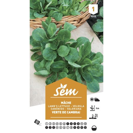 Graines Mâche Verte de Cambrai : variété rustique à petites rosettes de feuilles tendres, offrant une saveur douce et délicate, idéale pour les salades d'automne et d'hiver.