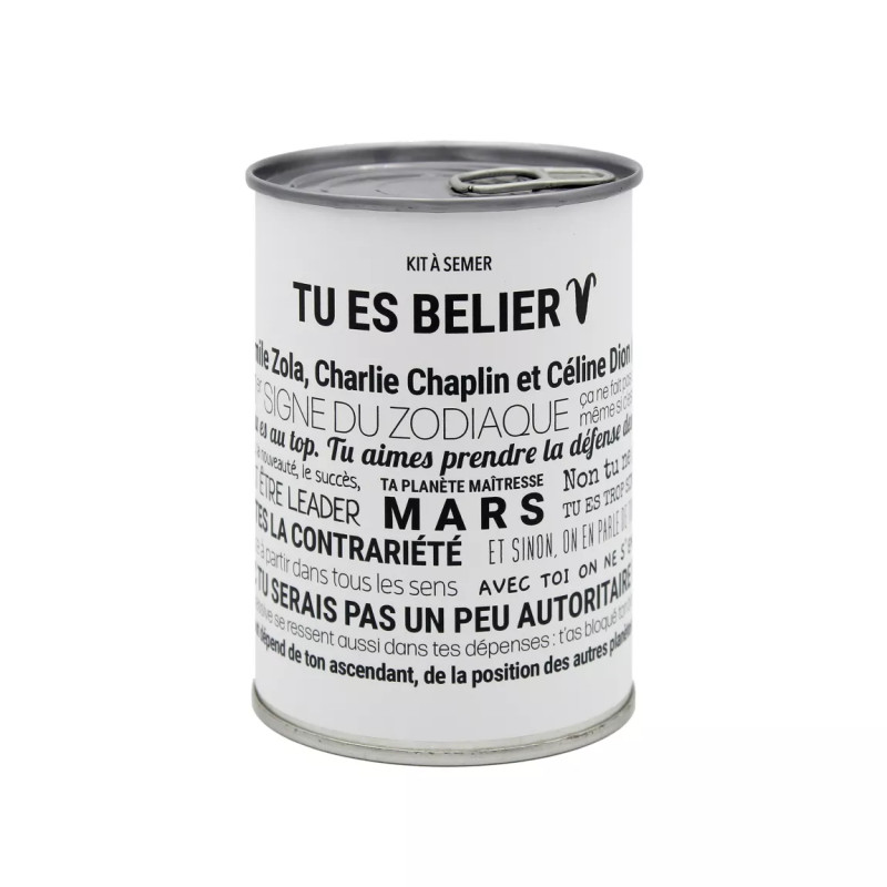 Le Kit à Semer Bélier avec "Tout est Dit" Mauvaises Graines fait partie d’une collection originale et décalée, créée en collaboration avec Toutestdit.fr. Avec 12 kits pour les 12 signes du zodiaque, chaque boîte contient un message humoristique et des graines de prairies, symbole de chance et de renouveau.