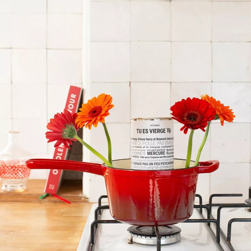 Le Kit à Semer Vierge avec "Tout est Dit" Mauvaises Graines fait partie d’une collection décalée et humoristique, issue de la collaboration avec Toutestdit.fr. Chaque boîte associe un message astrologique plein d’esprit et des graines de prairies, symbole de patience et de renouveau.