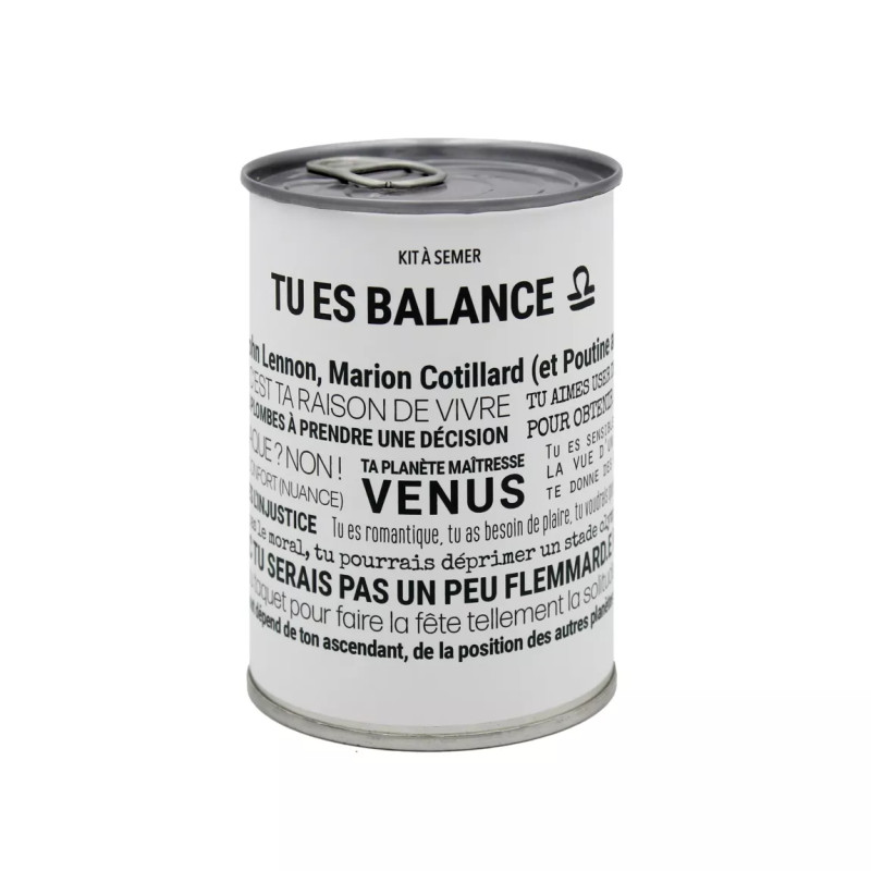 Le Kit à Semer Balance avec "Tout est Dit" Mauvaises Graines fait partie d’une collection décalée et humoristique, issue de la collaboration avec Toutestdit.fr. Chaque boîte associe un message astrologique plein de sens et des graines de prairies, symbole d’harmonie et de renouveau.