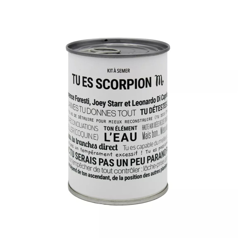 Le Kit à Semer Scorpion avec "Tout est Dit" Mauvaises Graines fait partie d’une collection décalée et humoristique, issue de la collaboration avec Toutestdit.fr. Chaque boîte associe un message astrologique percutant et des graines de prairies, symbole de transformation et de renouveau.