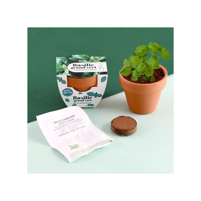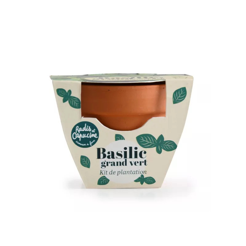 Mini Kit 6 cm Terre Cuite Basilic - Radis et Capucine
