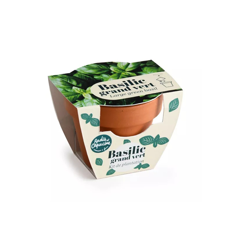 Offrez ou offrez-vous le Mini Kit Basilic en Terre Cuite 6 cm de Radis et Capucine pour une touche de fraîcheur et de gourmandise au quotidien !
