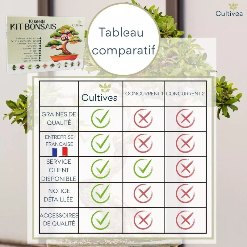 Offrez-vous ou offrez le Kit 10 Bonsaïs à Planter de Cultivea pour une expérience de jardinage unique et enrichissante !