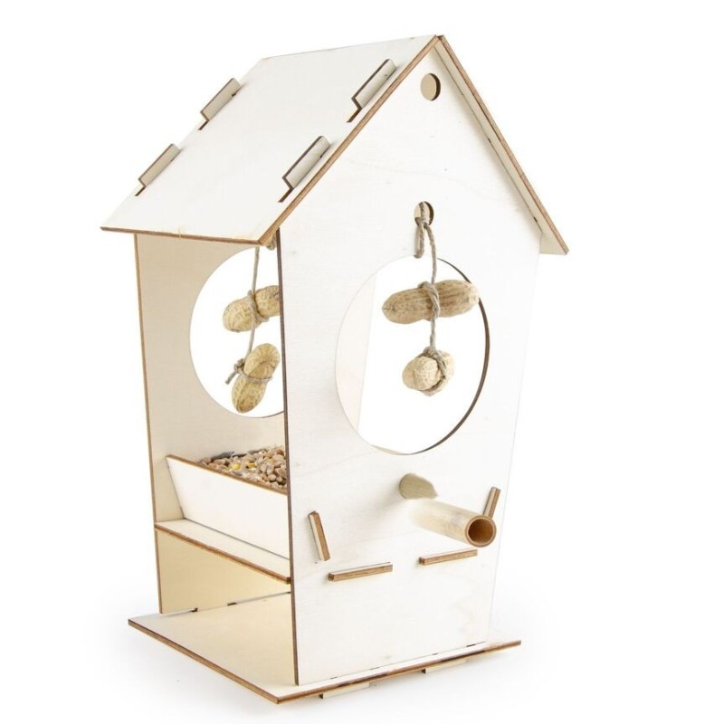 - Suivez les instructions fournies pour assembler les pièces en bois, en fixant les éléments pour obtenir une mangeoire stable.