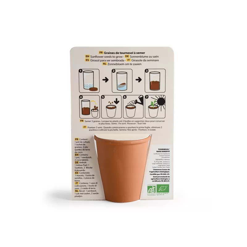 Ce kit contient tout ce dont vous avez besoin pour cultiver un tournesol nain "Sunspot" :