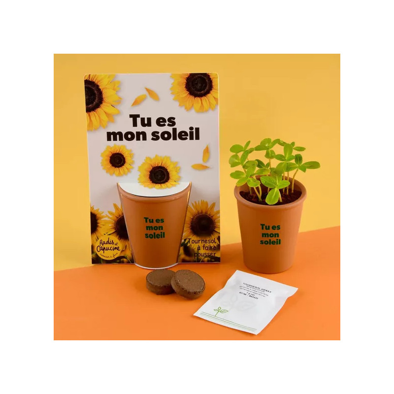 Offrez le Kit Jardinage "Tu es mon soleil" Tournesol de Radis et Capucine pour faire pousser un rayon de soleil dans le cœur et le jardin de vos proches !