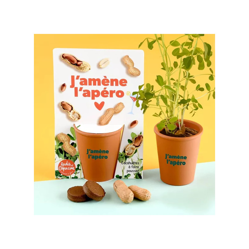 Kit jardinage message drôle "J'amène l'apéro" Cacahuètes - Radis et Capucine
