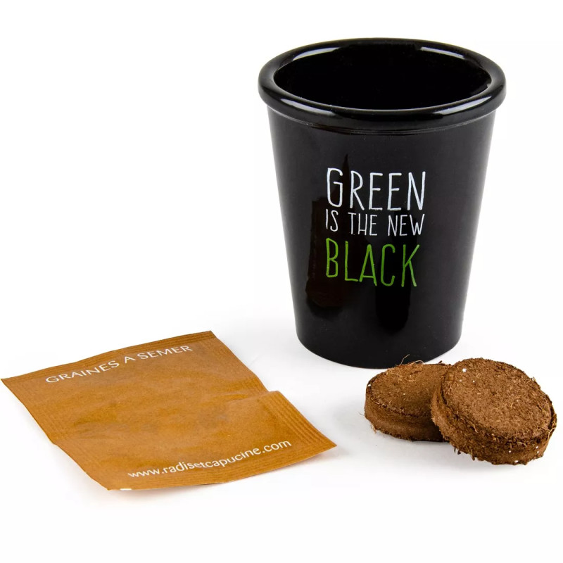 Pot Black Green is the new black Pâquerette - Radis et Capucine