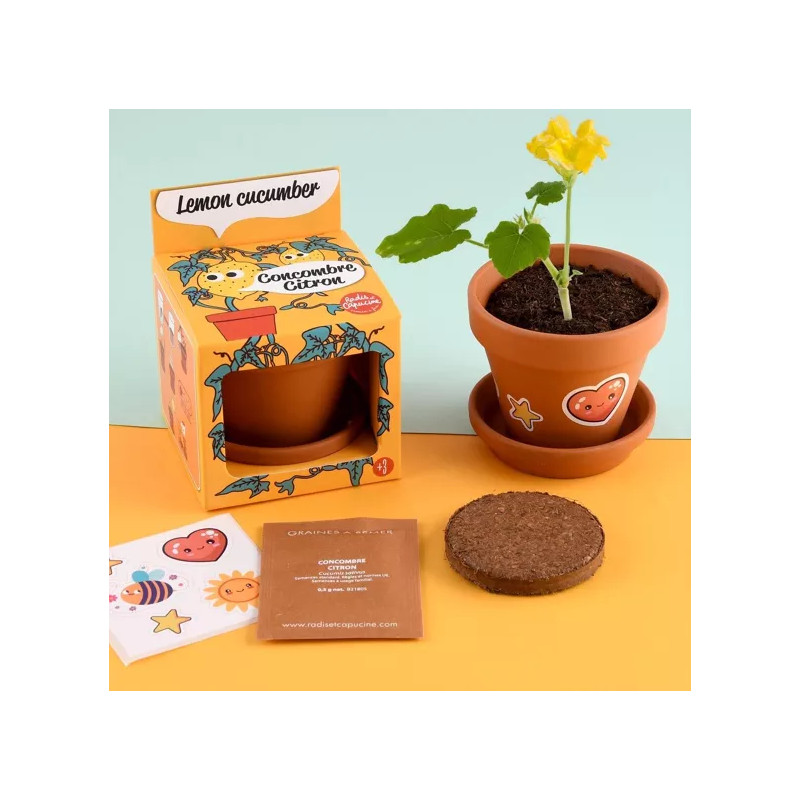 Kit Pot Terre Cuite 8 cm Concombre Citron - Radis et Capucine