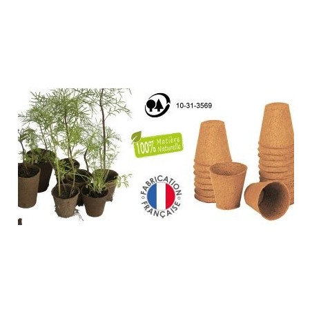 Découvrez le pot plantable 100 % naturel, fabriqué dans les Vosges à partir de fibres de bois locales. Breveté et certifié pour l’Agriculture Biologique, il est entièrement biodégradable et se décompose naturellement en humus dans le sol.